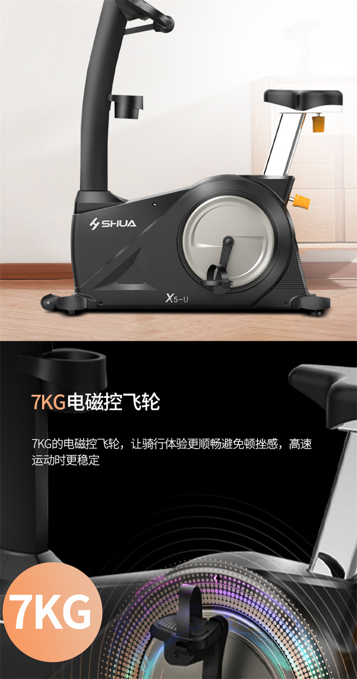 舒華立式健身車(chē)SH-6500U(X5-U)采用自發(fā)電,曲軸達3PCS,電控的阻力系統,設有24段阻力等級,擁有7.5kg的磁控輪。