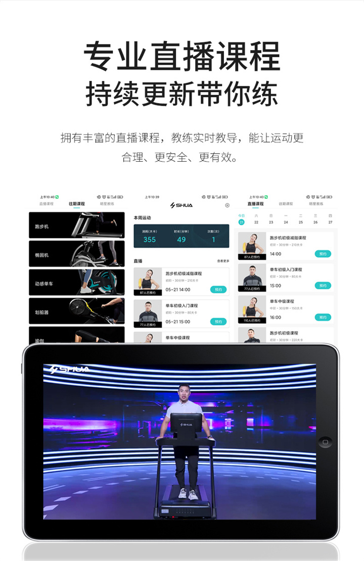 舒華I5智能家用跑步機是由舒華體育聯(lián)合中國體育科學(xué)學(xué)會(huì )、上海體育大學(xué)運動(dòng)科學(xué)學(xué)院教授陸大江等權威機構、專(zhuān)家共同研發(fā)設計。獨特之處在于它結合國際科學(xué)跑步研究理論,能夠針對不同用戶(hù)進(jìn)行運動(dòng)能力測試,并根據測試結果生成因人而異的有氧運動(dòng)處方。這意味著(zhù)每個(gè)用戶(hù)都能得到一個(gè)適合自己的運動(dòng)方案,從而更好地達到運動(dòng)效果。這一創(chuàng )新技術(shù)可以確保用戶(hù)在運動(dòng)過(guò)程中能夠保持在最佳的區間狀態(tài),從而提高運動(dòng)安全性和有效性。